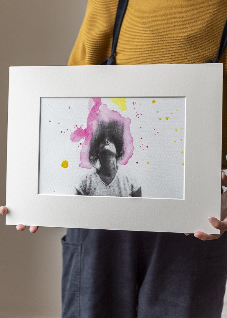 Watercolour on printed Bockingford Watercolour paper 190gsm. Size: 30 x 40 cm (Framed), 2023.